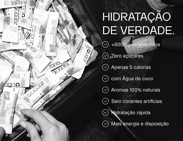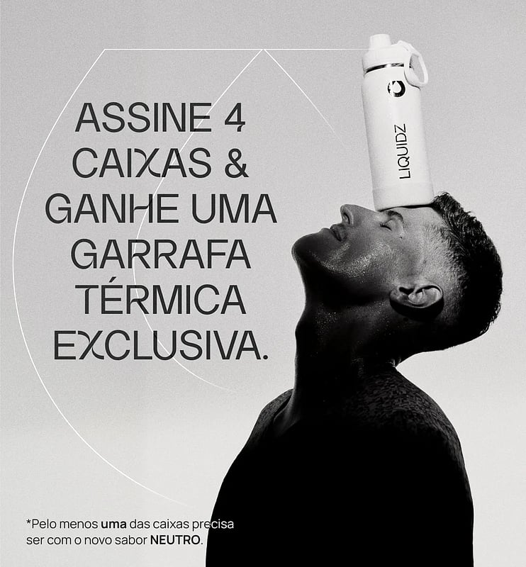 Assine e ganhe até 10% off + Frete Grátis em todos os pedidos, uma Garrafa da LIQUIDZ e um pack de Amostras com 5 sachês - inclusos somente no primeiro pedido.