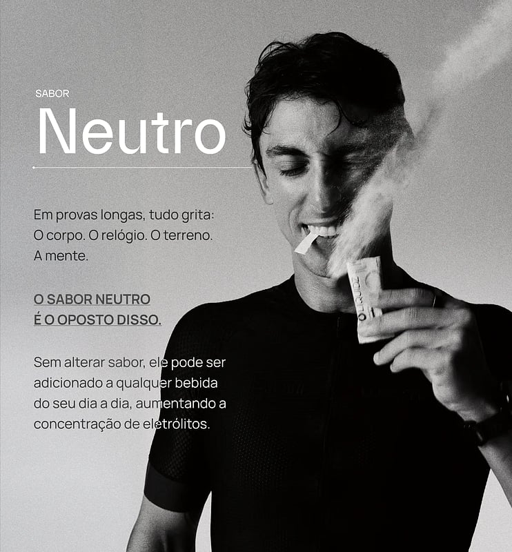 A diferença é que ele foi pensado para quem prefere uma opção sem sabor, mantendo a mesma proposta de reposição de eletrólitos. Por isso, é uma alternativa versátil que se encaixa bem em qualquer contexto, sem interferir nos resultados.
