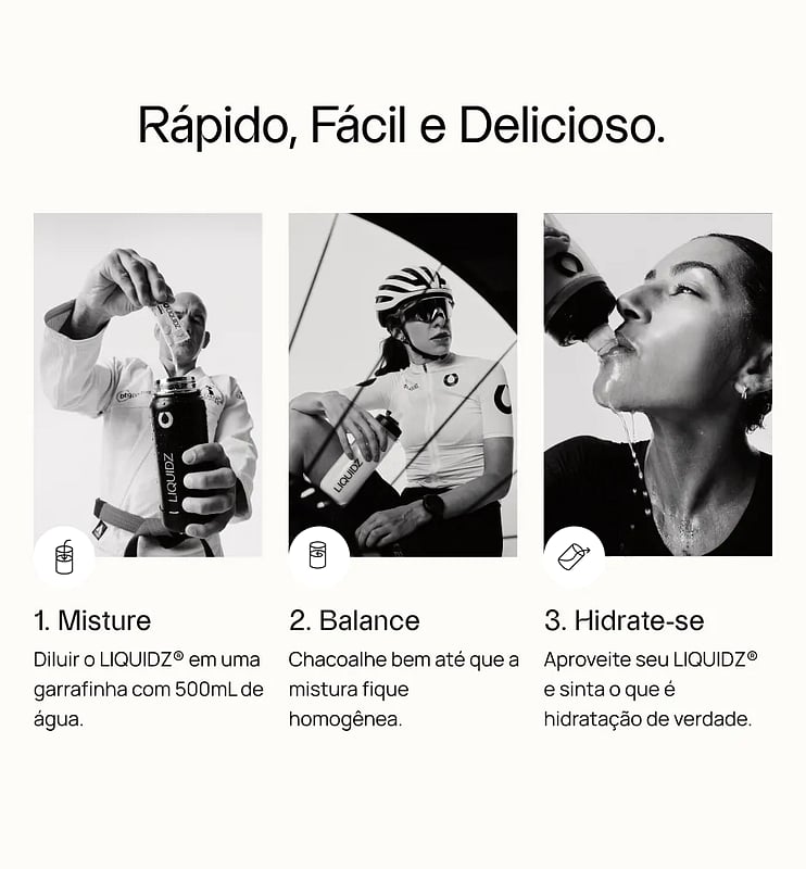 Para tomar LIQUIDZ® é super simples -- basta seguir estes 3 passos abaixo:
